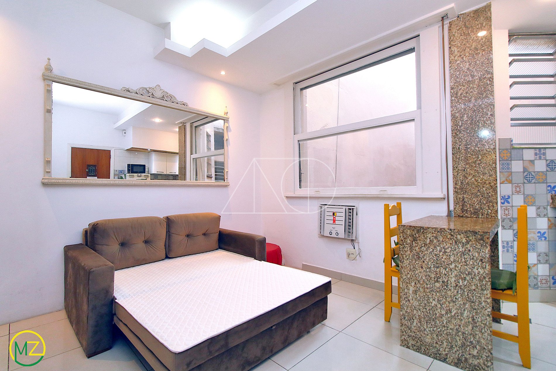 Studio silencioso e aconchegante para 3 pessoas localizado na quadra da praia de Copacabana no posto 2. Dividido em sala, quarto (sem porta), cozinha e banheiro sendo que, na sala tem uma cama de solteiro, uma mesa de mármore com 2 cadeiras e mais 2 cadeiras extras e ar condicionado. O quarto esta organizado com uma cama de casal e ar condicionado split. Cozinha composta de geladeira, microondas e fogão cooktop e banheiro com chuveiro a gás. TV a cabo básica e Internet Wi-fi estão incluidos no preço. Próximo a bancos, restaurantes, bares e transporte publico, é uma excelente opção para casal com filho, solteiros ou pequeno grupo de amigos.